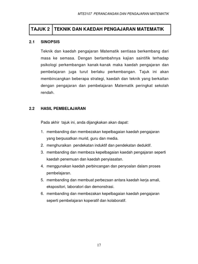 Tajuk 2 Teknik Dan Kaedah Pengajaran Matematik Pdf